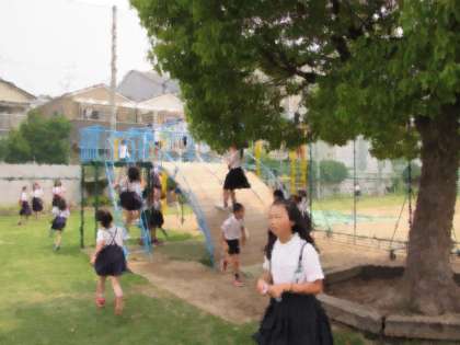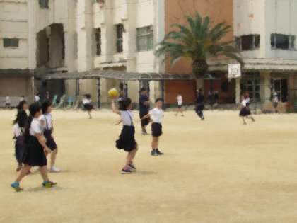本日の2時間目と3時間目の間、20分休みの様子です。子どもたちが運動場で元気いっぱいに遊んでいます。