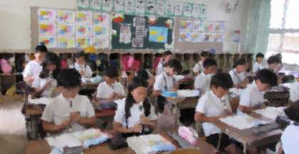 2組は、音楽の学習をしています。リコーダーで、「すてきな一歩」という曲の2部合奏に取り組んでいます。