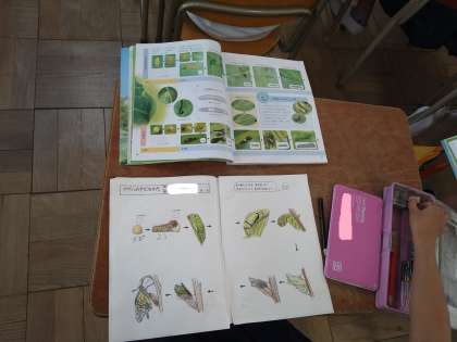 ワークシートを使って、アゲハチョウの育ちかたについてまとめました。