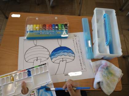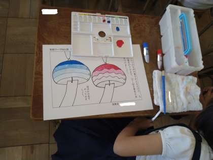 風鈴に絵の具で色をつけました。