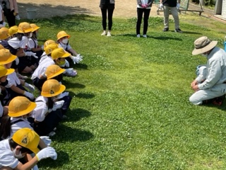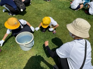 抜き方を聞いて、みんなの芝生を守るために雑草を抜きます。