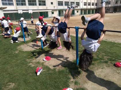 てつぼうでさかあがりの練習中です。