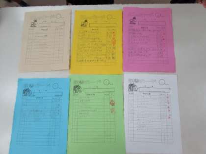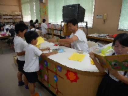 千本小学校では、学年ごとに図書カードを作り、貸し出しの記録を行っています(画像下)。図書室は、図書の時間だけでなく、水曜日の図書館開放の時にも、利用することができます。
