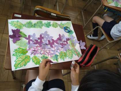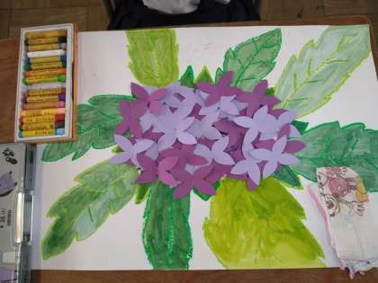 たくさんの花を画用紙に貼りつけるのが大変でしたががんばりました。