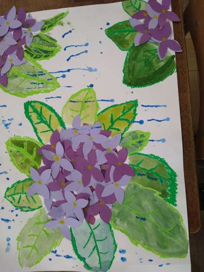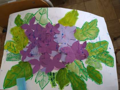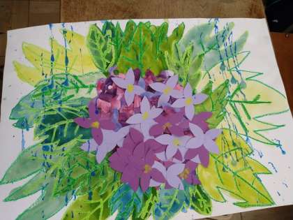 絵の具で雨を降らせて、あじさいが完成しました!!