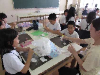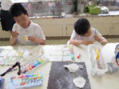 手作りクラブでは、紙粘土を使って、自由に製作に取り組んでいます。絵の具を使って、彩色もしています。