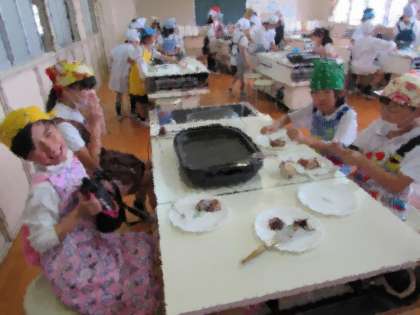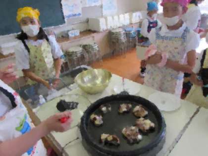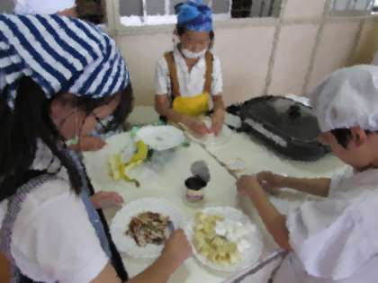 料理クラブは、ライスペーパーを使って、バナナ春巻を作りました。ライスペーパーにチョコレートを塗り、バナナとマシュマロを包んで、焼きました。