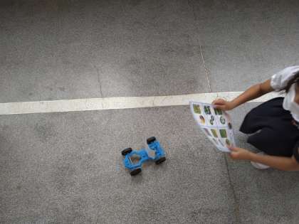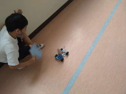 次は、うちわであおぐ強さをかえると、車の動き方がどうなるのかを実験します。