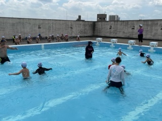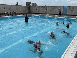 最後は、みんなで千本忍者になって、端から端へ泳ぎます。