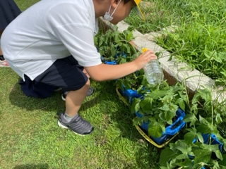 1年生 あさがおに水やりをしたよ