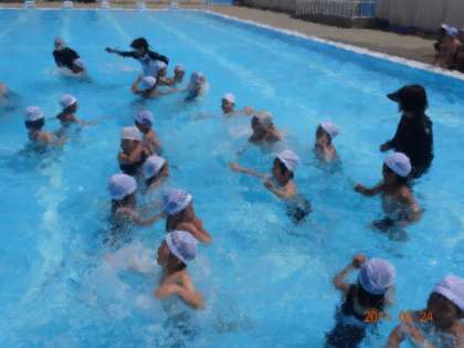 1年生は、6月23日(火)にプール開きを行いました。大きなプールですので、約束を確認し、水に慣れることから始めています。今日の水泳学習でも、子どもたちは、とても楽しそうに活動しています。
