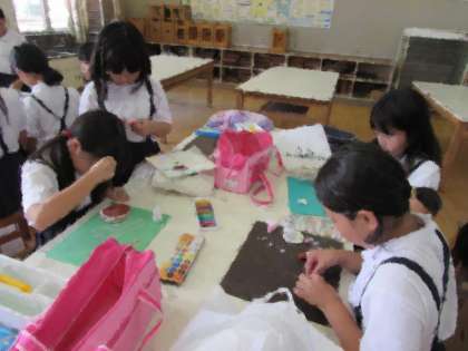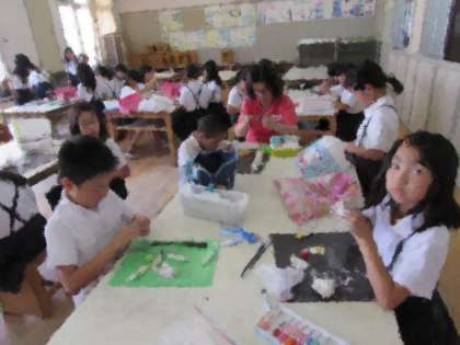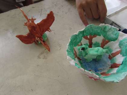 手作りクラブでは、子どもたちが紙粘土を使って、思い思いに創作活動に取り組んでいます。画像下は、「恐竜」だそうです。特徴をとらえて、しっかりと作ることができています。