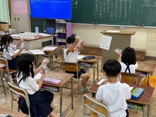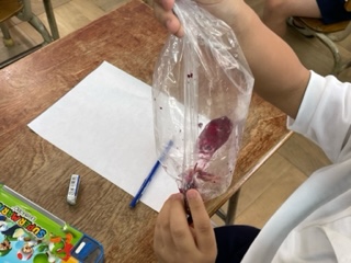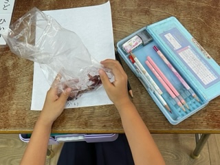 1年生 あさがおの色水遊びをしました