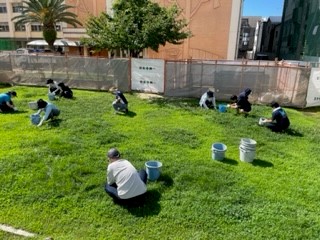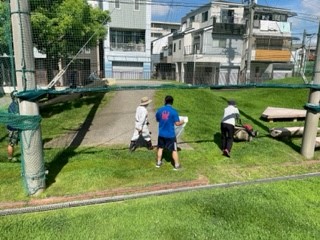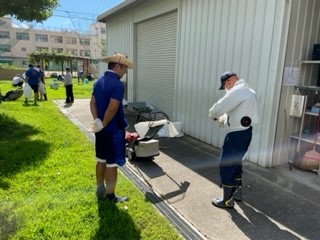 7月28日(木)に地域の方と教職員で芝生管理の作業をしました。