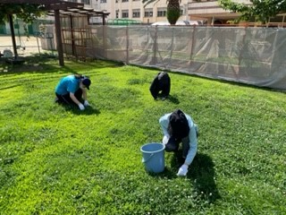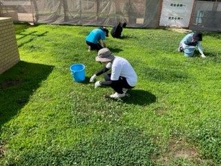 たくさん生えているクローバーを抜いていきます。