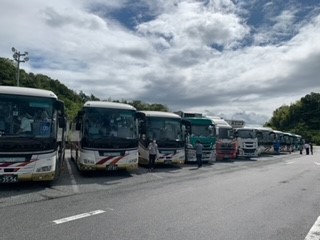赤松パーキングエリアに到着しました。 大阪市立の小学校のバスが多いようです。