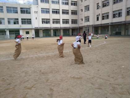 ドンゴロス、ネット、ミニハードルに挑戦しました。