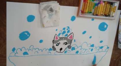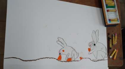 それぞれ好きな本を読み、心に残った場面をクレパスで描きました。