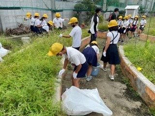 4年生の子どもたちも手伝ってくれました。軍手が真っ黒になるまで、雑草を抜いてくれました。