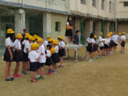 本日は、初めに西成警察の方から、夏休みのくらしについての話がありました。遊びに行くときには、誰と、どこで遊ぶ、何時に帰るなどをおうちの人に知らせてから遊びに行きましょうという話、また、昨日、奈良で起きた小学生の女の子の誘拐事件の話から、危険なことにあわないためにも、十分に気をつけましょうというお話でした。