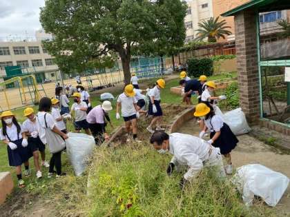 また、今回は4年生が地域の方や保護者の方と学習園の整備も行いました。