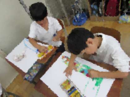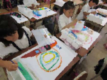 2年生の学習の様子をご紹介します。2年生は図画工作で「にじいろかたつむり」に取り組みました。