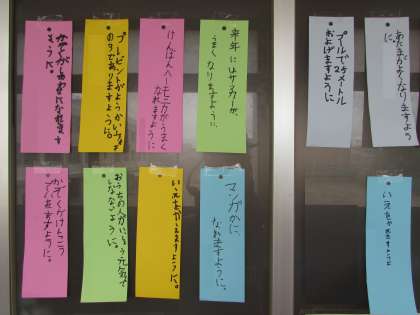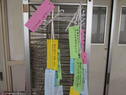 今日は七夕、いろいろな学年で、子どもたちが短冊に願いを書いています。願いがかなうといいですね。