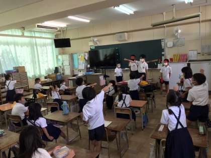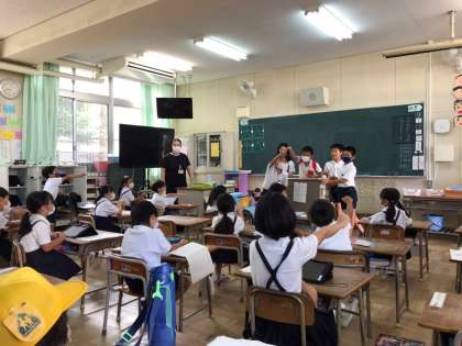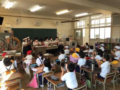 応援団のみなさんが教室に回って応援の仕方をレクチャーしています♪