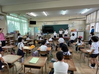 木曜日の朝の時間に、応援団が応援合戦の仕方を教えに来てくれました。