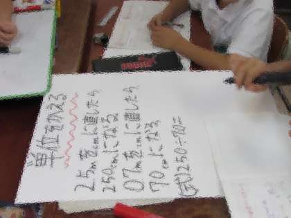 子どもたちは、あまりがいくらになるかを考え、グループで発表しました。
