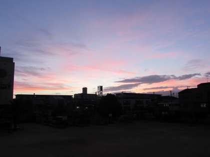 夕方、千本小学校の校舎から見える西の空の様子です。夕焼けが、とてもきれいです。明日も晴れるのでしょうか。