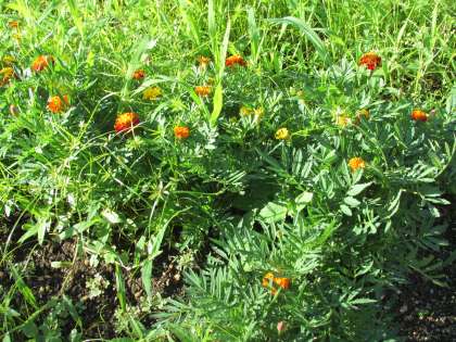 校庭では、朝からセミの大合唱です。1年生の学習園では、マリーゴールドの花が咲き始めました。