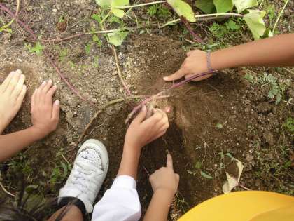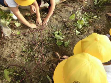 今日は、学習園のサツマイモをみんなで収穫しました!