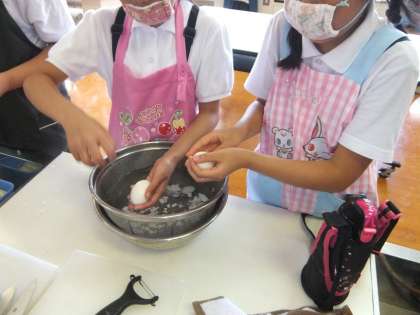 5年2組では、今日の家庭科の学習で調理実習を行いました。