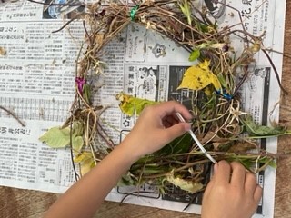 どちらのクラスもしっかり束ねて、リースをつくれています。
