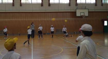 学年全員でドッジボールをしました。