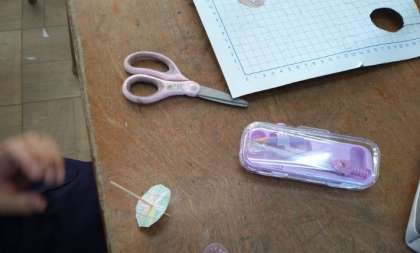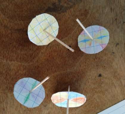 コンパスを使ったコマづくりの組み立てをしました。