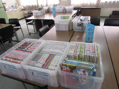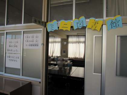 学校図書館は、蔵書のバーコード化の作業のため、今夏、開放をしませんが、西成図書館から借りた本を使って会議室で「ミニ図書館開放」を行います。西成図書館から借りた450冊の本があります。今日21日と、来週28日、9時から12時まで開放を行いますので、児童の皆さん、ぜひ、参加してください。