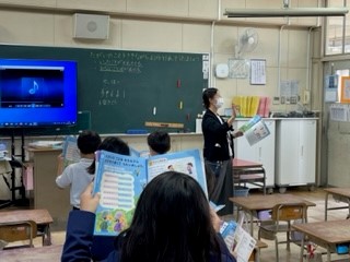 11月1日の音楽の時間に、やまびこの歌を歌いました。