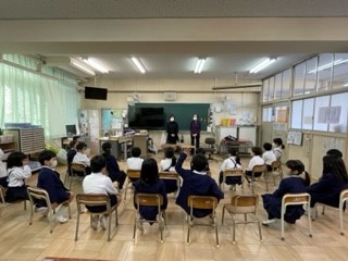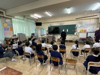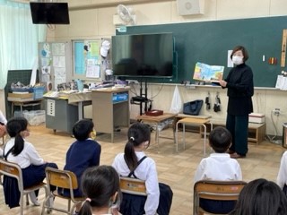 1年生には「どうぞのはこ」団体の方が来てくださり、お話や絵本の読み聞かせをしていただきました。