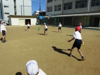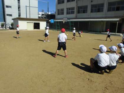 見る人はコートから離れて座る、攻守交替が素早くできるようになってきました!