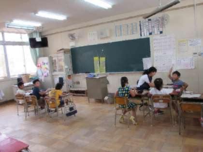 登校してきた子どもたちが、学習に取り組んでいます。わからないところは先生に教えてもらいながら、集中して取り組んでいます。画像は、3年生(画像上・中)と、5年生(画像下)です。