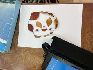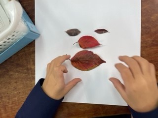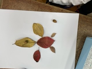 公園探検で見つけた葉や木の実を自由においてなににみえるか考えました。