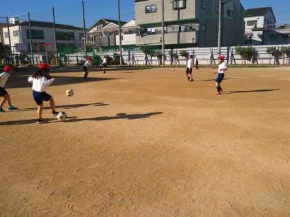 サッカーのパスの練習をしました。 だんだん上手になってきました。