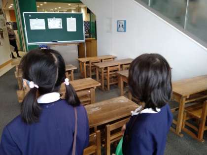 昔の学校のようすを見学したり、昔、使われていた道具を見学しました。