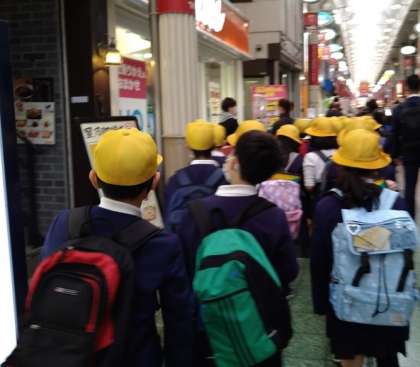 今昔館の見学後、天神橋筋商店街を見学して学校に戻りました。