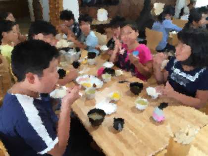 朝の会の後は,朝食の時間です。しっかり食べて、いざ!登山へ出発!!