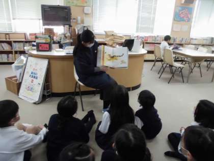 みんなが楽しみにしている図書の時間。今日は、干支の絵本の読み聞かせをしてもらいました。自分の干支は何番目なのかとても気になっていました。