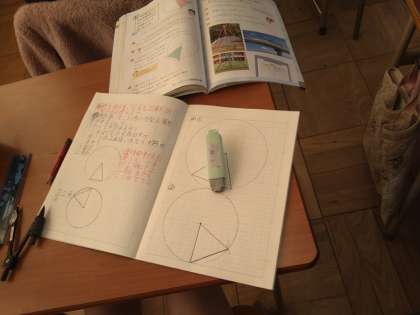 円と半径を使ってかくことのできる三角形について学習しました。