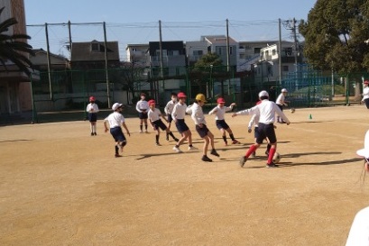 ラインサッカーの練習のようす サッカーボールの扱いも上手になってきました。
